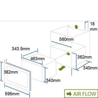 Dimensiones hueco de encastre: 362 x 560 x 340 mm (alto x ancho x fondo)