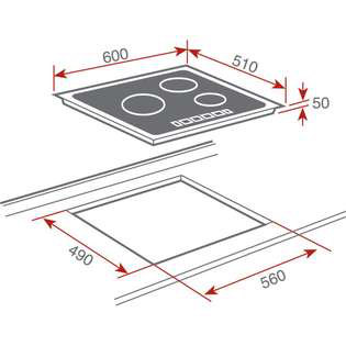 Dimensiones del aparato: 600 x 510 x 50 mm (ancho x fondo x alto)